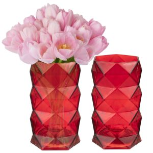 Inspired Design - These trendy and stylish rugged glass vases have a classy 1920s art-deco vintage feel to them, with an alternating indented argyle pattern around the red glass.