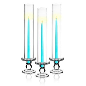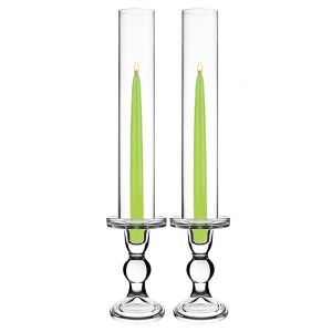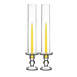 Find glass candle holders and candlesticks or every size and variety. In this enormous collection, with over 100 different styles, we offer hurricane candle holders (classic and open-ended candle shades), stemmed candle holders (short stemmed holders and long stemmed holders), tealight holders, hanging candle holders, taper candle holders, and special curated sets with unique staggered designs.
