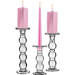 A dynamic candle set combination is so incredibly satisfying in its presentation, no matter where you place it, whether it's on your fireplace mantle, on a wall shelf, on your kitchen counter, or on a dining table in your homes, restaurants, or venues. Here at Glass Vases Depot, you're going to discover spectacular designs of glass candle holder sets ranging from classical and vintage to eclectic, modern, or contemporary. There's something for every decorative vision. A majority of our glass candle sets can accommodate pillar candles, taper candles, tealights, and hurricane candle shades, which we happen to have an extensive collection for. Find your happy combination and your decorative set-ups are guaranteed to dazzle your beholders.