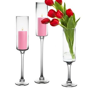 Glass Vase's Depot's long stem glass candle holder collection represents the Hyperion of modern elegance. These glass candle holders may be simple in shape, but their thin stems and smooth clarity sets the standard for high class. You'll find that these candle holders (with heights of taller than 12 inches) can display pillar candles, floating candles, or even floral arrangements.